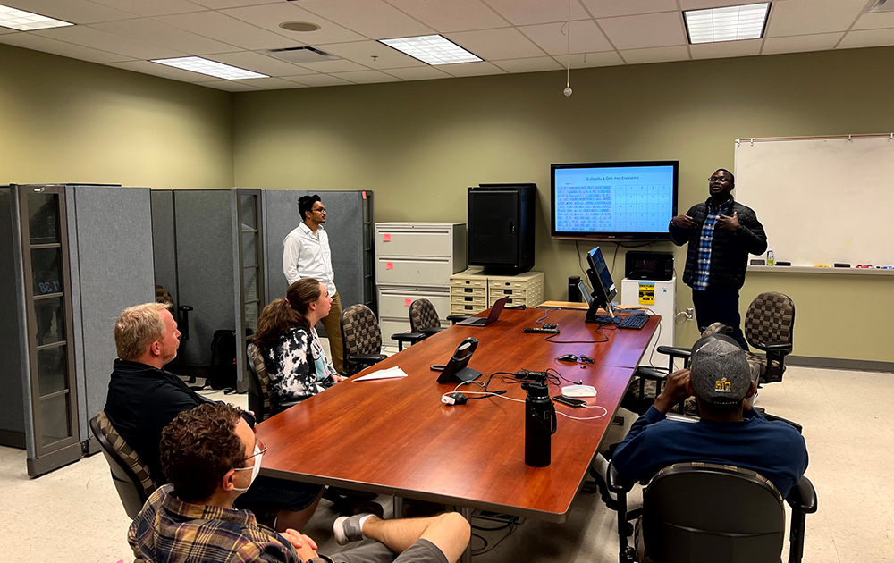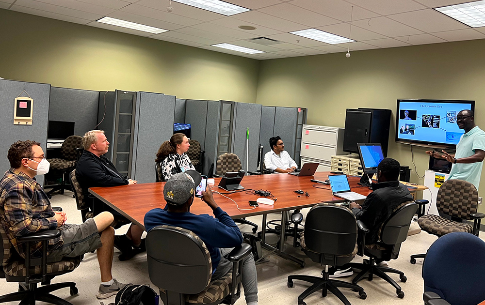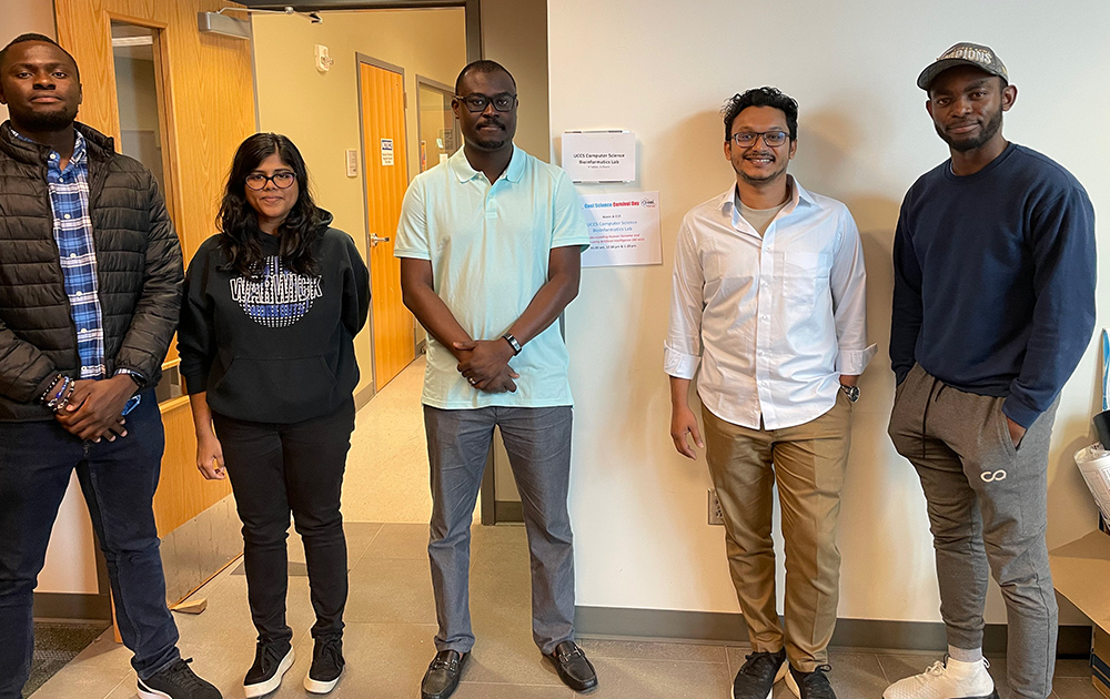 Bioinformatics Lab 2023 Summer REU Students: Ashley Doerfler (Oregon State University-Cascades, Bend, OR), Miguelangel Tamargo (Florida International University, Miami, FL ), Dr. Oluwadare, Kevin Stull(University of Colorado Boulder, CO), and Dmitry Pinchuk (University of Wisconsin-Madison, WI) (from left to right)