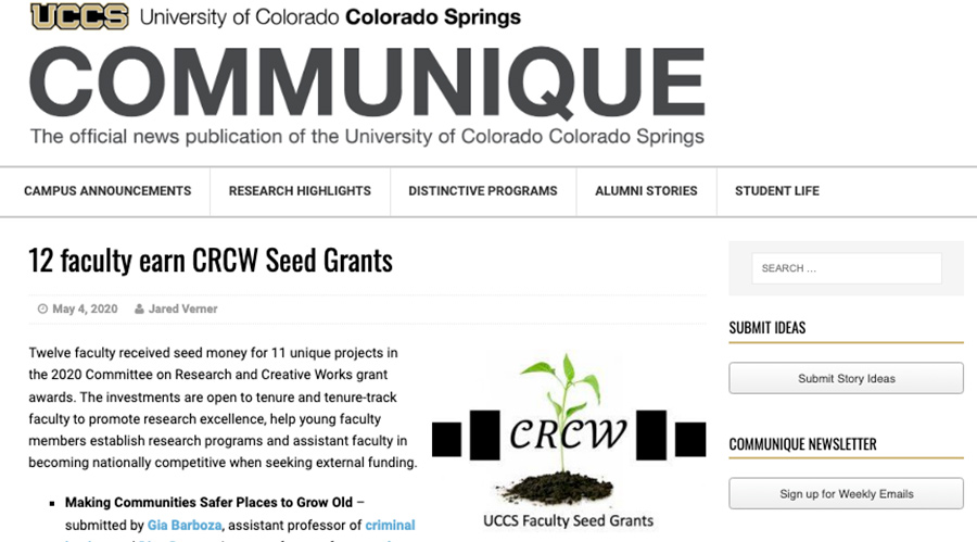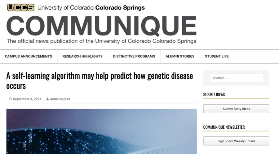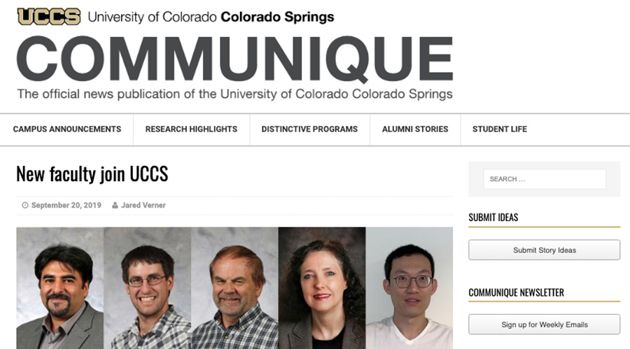 September 2021: One of the recent works from our research group was recognized in the UCCS News publication, the Communique. This novel work was performed by Van Hovenga and I, with Van as first author. Please join me to congratulate Van! Find the News here: The Communique News